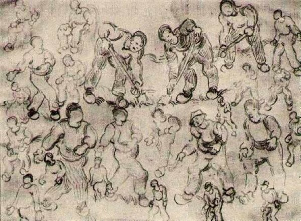 Vincent Van Gogh Sheet with Numerous Figure Sketches Oil Painting Reproduction
